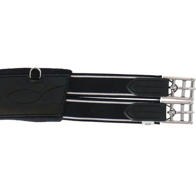 Synthetische, anatomisch gevormde singel met comfort gel, waardoor het paard beter kan ademen en optimale bewegingsvrijheid heeft. De airflow gelpads bedekken een groot deel van de paardenbuik zonder te knellen. De speciale vormgeving vermindert druk op gevoelige organen en voorkomt oververhitting. De buikflap geeft optimale bescherming van de paardenbuik tijdens het springen en heeft een breedte van 50 cm. De singel heeft elastiek aan twee zijden en is in het midden voorzien van een D-ring en een gepatenteerde haak voor de bevestiging van eventuele hulpteugels. Deze haak is op zo’n manier vormgegeven dat er geen extra musketonhaken of gespriempjes nodig zijn. Het risico op verstrikt raken of vallen tijdens het springen wordt op deze manier voorkomen. De elastische uiteinden bieden extra comfort en het paard is hierdoor gemakkelijker aan te singelen. Ook blijft het zadel hierdoor goed en recht op het paard liggen. Aan beide zijden heeft de singel ook een extra D-ring voor de bevestiging van eventuele hulpteugels of voortuig. De singel is voorzien van roestvrijstalen rolgespen met een elastiekje eromheen. Hierdoor valt tijdens het aansingelen de doorn van de gesp gemakkelijk in het gat van de singelstoot, wat het aansingelen vergemakkelijkt.