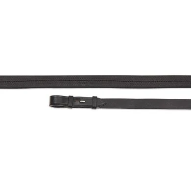 Rubberen teugels met leren leidsels. Voorzien van roestvrijstalen fittingen.