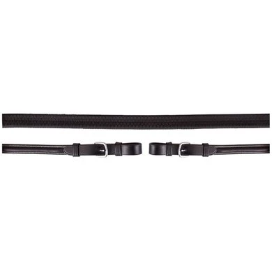 Eventa rubberen gripteugel met nylon inlage, teugelstops en ronde gespen. De teugel is voorzien van crèmekleurig sierstiksel, 16 mm.