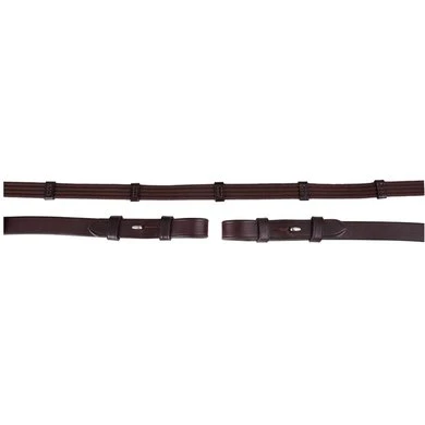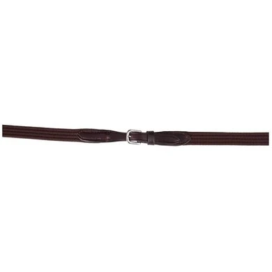 Linnen teugel met lederen hand- en teugelstops, blinde sluitingen en ronde gespen, 19 mm.