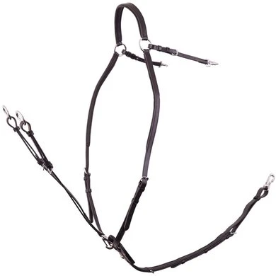 BR voortuig Rayleigh Luxe lederen voortuig met vele verstelmogelijkheden. Het voortuig kan eenvoudig aan het zadel bevestigd worden met musketons aan de onderzijde van de singel. Voor de bevestiging zijn er twee opties: met een musketon of met een lederen lus met een gespsluiting. Het borsttuig is uitgevoerd in het beste volnerf Europese leder, dit leder is sterk, soepel, voelt zacht aan en is duurzaam. De meeste delen zijn zacht onderlegd en het geheel is mooi afwerkt en voorzien van hoge kwaliteit roestvrije messing fournituren. Het voortuig wordt geleverd met een verstelbare, lederen martingaalvork voorzien van een musketon, zodat deze eenvoudig eraf gehaald of erop gezet kan worden. Het zwarte voortuig heeft glanzende, zilverkleurige fournituren en het Tobacco voortuig heeft matte, messingkleurige fournituren.