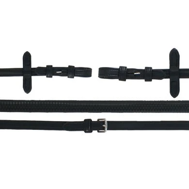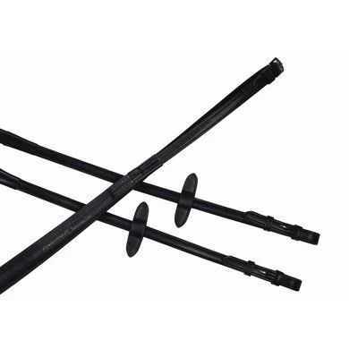 De Collegiate Syntovia + rubberen teugels zijn hoogwaardige synthetische leren rubberen teugels met haak- en staand knuppels voor duurzaamheid en veiligheid.