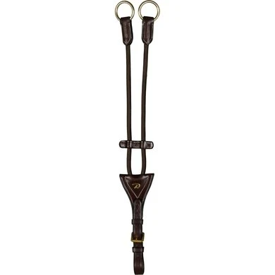 Elastisch Running Martingaal Bevestiging met rond elastiek, 8 mm in diameter en ringen op afstand van elkaar door middel van een leren strip die op en neer schuift over de banden.