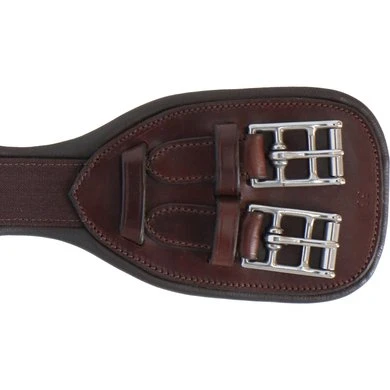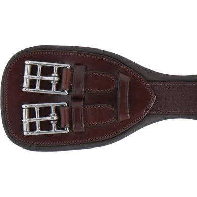 Anatomische leren singel voor dressuur en crosscountry. Vaste stalen gespen en centrale ring. Voering van kalfsleer.
