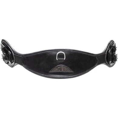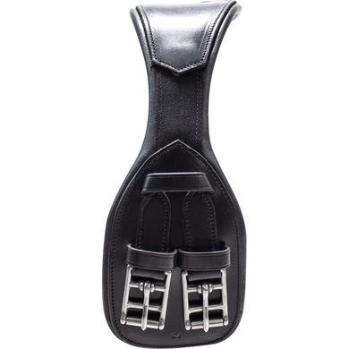 Anatomische leren singel voor dressuur en crosscountry. Vaste stalen gespen en centrale ring. Voering van kalfsleer.