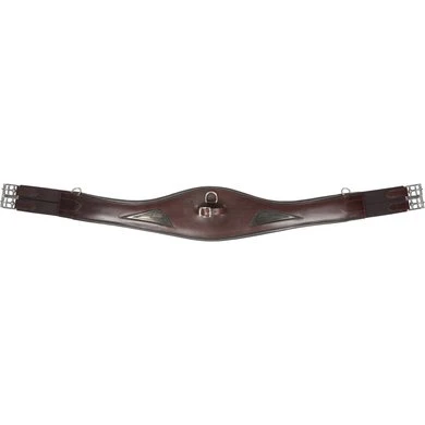 Anatomische leren studguard singel. Midden- en zijringen. Stalen gespen met elastiek. Voering van kalfsleer.