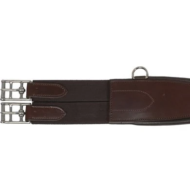 Anatomische leren studguard singel. Gesp en riem voor martingale borstsingel. Zij ringen. Stalen gespen met elastiek. Voering van kalfsleer.
