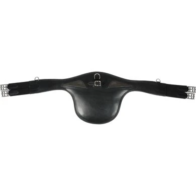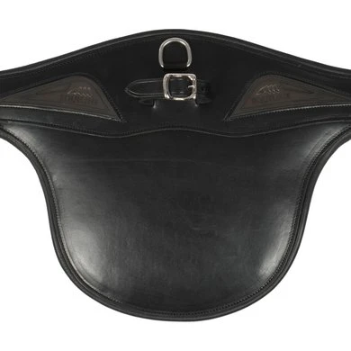 Anatomische leren studguard singel. Gesp en riem voor martingale borstsingel. Zij ringen. Stalen gespen met elastiek. Voering van kalfsleer.