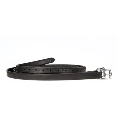 Italiaanse leren stijgbeugelriemen met non-stretch nylon inzetstuk.