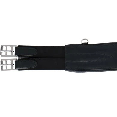 Volledig gevoerde singel met buikflap gevoerd met Clarino microvezel. Voorzien van 2 zijringen en een centrale snap met beschermende afdekking aan de onderkant. Roestvrij stalen rolgespen op drievoudige elastische ondersteuning aan elke kant.
