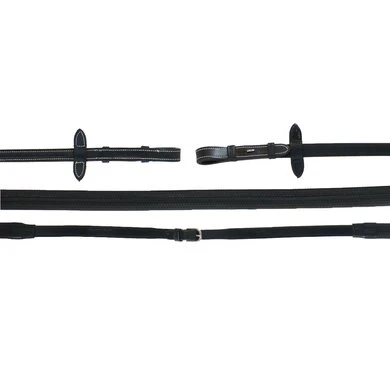 Met haken, rubber teugels met smalle nopjejs en witte stiksels.