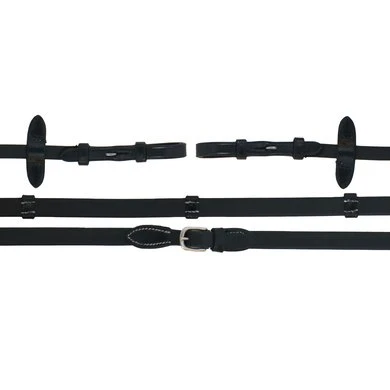 Met haken en zachte rubberen grip met 5 lederen stoppers. Witte stiksels.