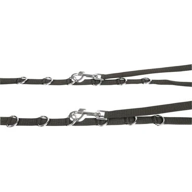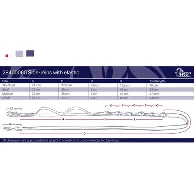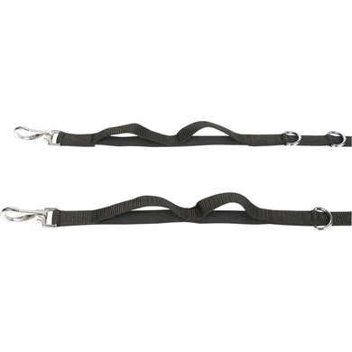Eenvoudig verstelbare bijzetteugels door de D-ringen, te gebruiken tijdens het rijden, longeren of aan de hand werken, deels onderlegd met elastiek