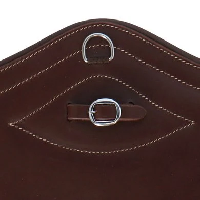 Lederen buikflapsingel met rundlederen voering. Beide zijden met elastiek aan het begin van de singelstoten voor extra bewegingsvrijheid bij de buik. Met rvs rolgespen en D-ring op buikflap (voor hulpteugels).