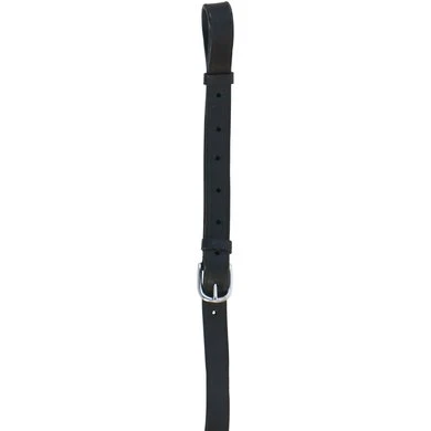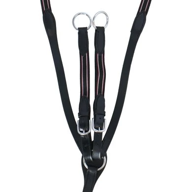 Lederen voortuig met RVS fournituren met elastische en afneembare martingaalvorkjes.
