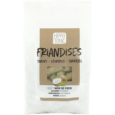 Samenstelling: tarwezemelen, haverzemelen, gerst, calciumcarbonaat, suikerrietmelasse, mais, 0,5 % geraspte kokos. Analytische bestanddelen: ruwe eiwit 10,1 %, ruw vet 3,5 %, ruwe celstof 12,5 %, ruwe as 12,4 %, calcium 3,2 %, natrium 0,05 %, fosfor 0,51 %.