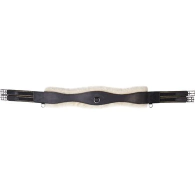 Anatomisch gevormde leren singel voor een spring / veelzijdigheids zadel, gevoerd met schapenvacht.- elastiek aan beide zijden – roestvrijstalen rol gespen- bont voering met klittenband – met bevestigingsringen voor hulpteugels