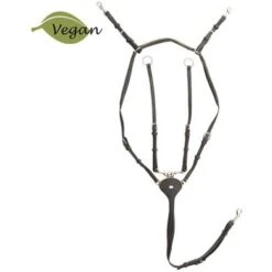 Het veganistische 3-punts hoge borsttuig “Cortica” is smal en elegant gesneden met een contrasterende kurkbies als decoratief element. Het is meervoudig verstelbaar en de onderste karabijnhaak kan worden verwijderd. Zonder elastische inzetstukken.