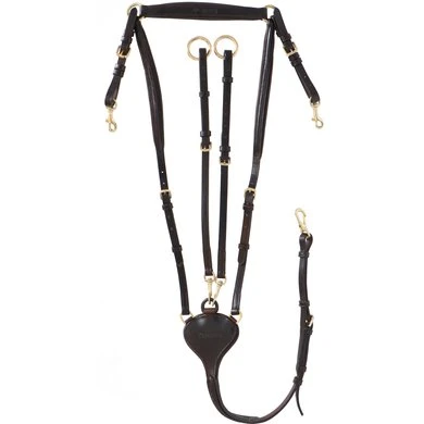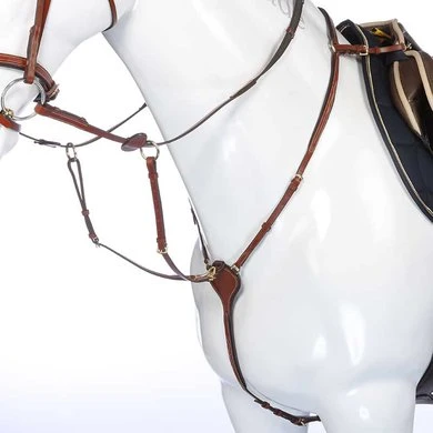 Gemaakt van het beste Duitse kwaliteitsleer, inclusief een variabele martingaalvork. Met sierstiksels. Meervoudig verstelbaar en zacht gewatteerd. Zonder elastische zones.