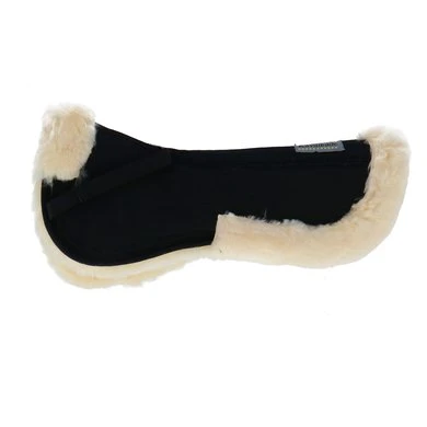 Zadelonderlegger van medisch lamsvel, zonder inlages, met ruggegraatuitsparing. De onderlegger is gemaakt van anti-allergisch bont, speciaal voor paarden met een gevoelige huid. Bovendien bevordert het lamsvel de bloedcirculatie in de spieren van paarden. Door de natuurlijke creatie masseert de vacht tijdens het rijden de rug van het paard. Onder medisch lamsvel ontwikkelt zich geen warmte waardoor geen oververhitting ontstaat.
