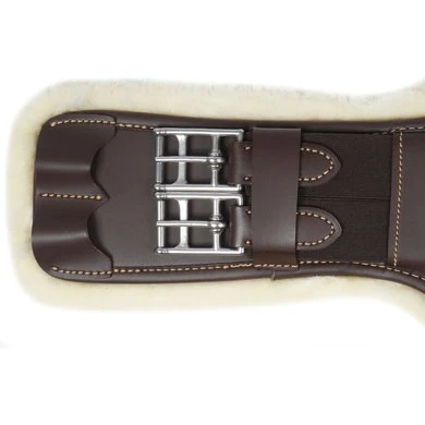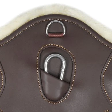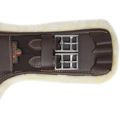 De Sheepskin Short Stud Girth is anatomisch gevormd en biedt comfort en bescherming tijdens het springen.De wijde buiklap beschermt de buik van het paard tegen de hoefijzers of kalkoenen tijdens het springen. De artificiële wollen voering wordt vastgemaakt aan de binnenzijde van de singel aan de hand van een stevigklittenband. Deze voering geeft een zeer aangenaam gevoel en is uiterst geschikt voor paarden met een gevoelige huid.De singel is gevuld met schokabsorberend EVA-schuim en is aan beide zijden uitgerust met driedubbele elastiek, alsook heeft deze eenD-ringom hulpteugels aan vast te maken. Er werd eveneens een karabijnhaak voorzien om de borstriem aan vast te maken. De singel is gemaakt van artificieel leder waardoor deze zeer gemakkelijk te onderhouden is, geen zweet opneemt en dus geen barsten vertoont of verkleurt. De Buiklapsingel kan worden schoongemaakt met onze Kentucky Horsewear Tack Cleaner. Deze werd speciaal ontwikkeld om artificieel leder proper te maken. Uiterst gemakkelijk en efficiënt! Wasbaar in de wasmachine op 30°.