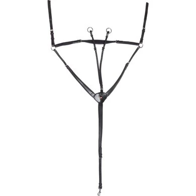 De elastische, verstelbare nekriem loopt over de schoft en is aan elke kant aan zadelriemen vastgemaakt