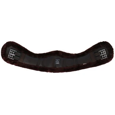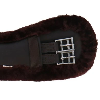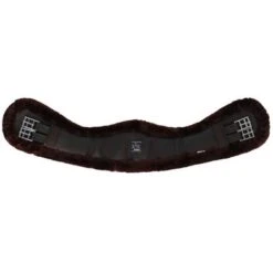 Korte synthetische singel van leerachtig polyurethaan gevoerd met synthetisch schapenvacht met hoge dichtheid. Rolgespen aan dubbele elastische uiteinden. Beschikt over een centrale ring.