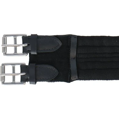 Een gevulde singel met split rund leren verstevigingen aan beide kanten. Rvs rolgespen op leren riemen en leren passanten.