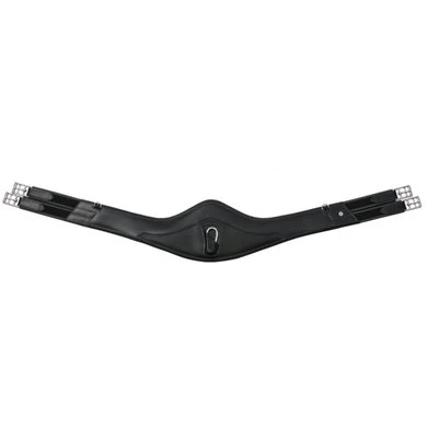 Singel van buffelleer gevoerd met rundleer. Drie dubbel elastiek aan elke kant. Haaksluiting het midden en een ring aan elke kant. Roestvrijstalen rolgespen gemonteerd aan drievoudige elastische banden aan beide zijden.