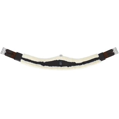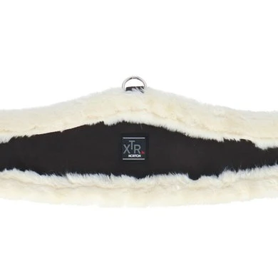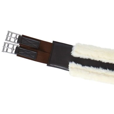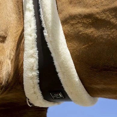 Synthetische singel van leerachtig polyurethaan gevoerd met synthetisch schapenvacht met hoge dichtheid. Rolgespen aan dubbele elastische uiteinden. Beschikt over een centrale ring.
