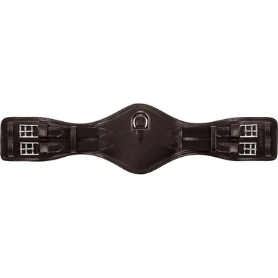 De gebogen lederen zadelsingel met elastische uiteinden aan beide zijden heeft een D-ring in het midden voor het bevestigen van extra teugels en garandeert een optimale bewegingsruimte voor het paard. Het verbrede riemcentrum zorgt voor een optimale drukverdeling. De zadelband heeft aan beide zijden twee extra lipjes voor een optimale omsnoering!