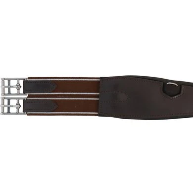 De klassieke gebogen leren zadelsingel heeft aan beide zijden elastische uiteinden. Er is een D-ring in het midden voor het bevestigen van de borstplaat en een D-ring aan elke kant voor het bevestigen van hulpteugels.