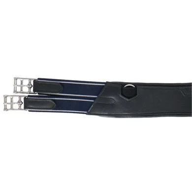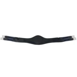 De leren singel van Passier heeft aan beide kanten elastische uiteinden, een musketonhaak in het midden voor de borstplaat en aan elke kant een D-ring voor de extra teugels.