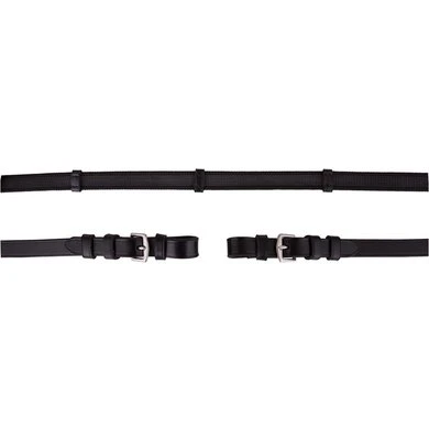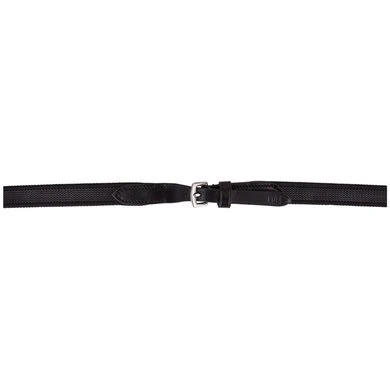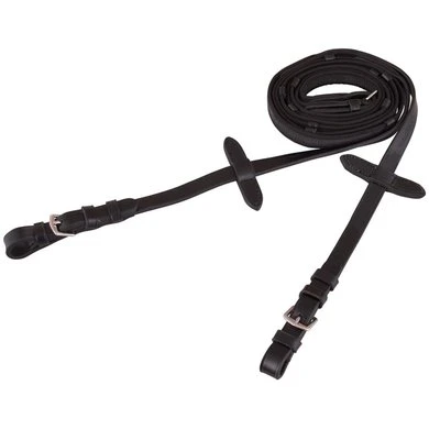 Linnen teugel omwikkeld met rubber voor extra grip. Deze antislip teugel heeft lederen hand- en teugelstops, 19 mm breed. De lederen uiteinden met roestvrijstalen gespsluitingen zijn 16 mm breed.