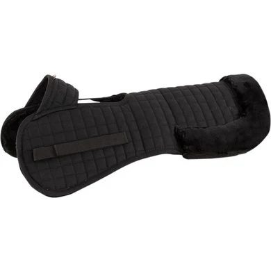 Deze anatomisch gevormde zadelonderlegger heeft een stijlvolle buitenzijde van gestept katoen en een heerlijk zachte voering en gedeeltelijke rand van synthetische schapenvacht. De synthetische schapenvacht voelt zacht aan op de paardenhuid, helpt de druk te verdelen en heeft een schokabsorberend effect. De praktische uitsparing voorkomt druk op de schoft. De zadelonderlegger beschikt over zadellussen met klittenband en is lichtgewicht, onderhoudsvriendelijk en machinewasbaar.