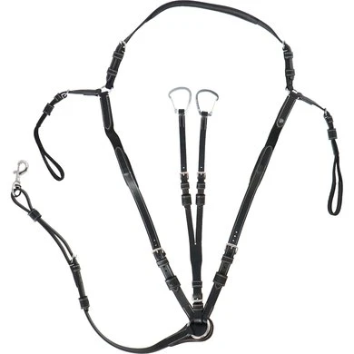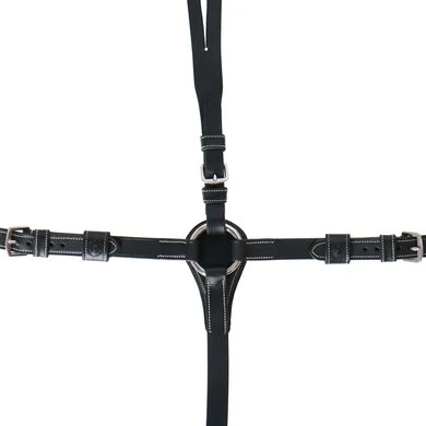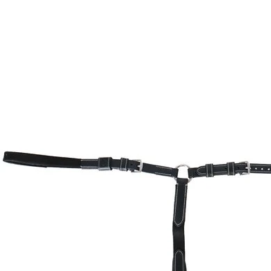 A well-worked breastplate, extra padded along the withers for additional comfort. The martingale is adjustable on both sides of the neck. The clever Snap It hooks make it unnecessary to open the reins to connect the equipment which is great both out of a practical and safety point of view.