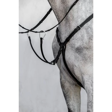 A classic martingale, extra padded along the withers for additional comfort. A convenient hook attaches to the girth and the martingale is adjustable on both sides of the neck. The clever Snap It hooks make it unnecessary to open the reins to connect the equipment which is great both out of a practical and safety point of view.