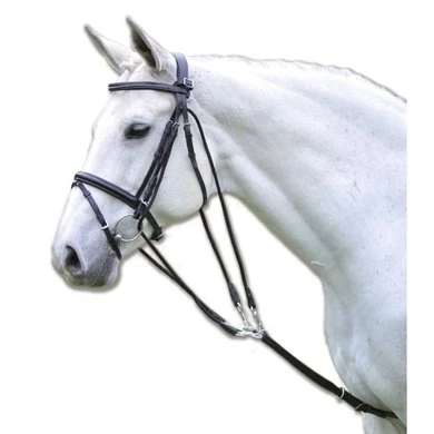 Verlaagt de koets van het paard. Verstelbaar om neus naar binnen te brengen en buiging. Bestaat uit: nekstuk, onderstuk, 2 perlon snaren.