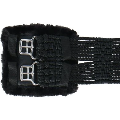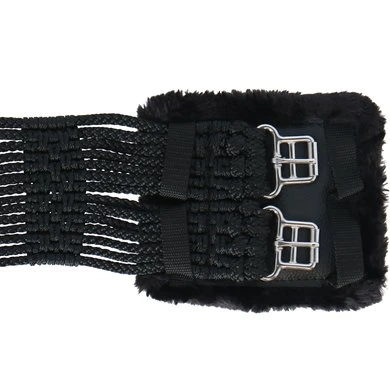 Ademende, brede korte koordriem met gepolsterde roestvrijstalen gespen: de fleece en synthetisch lederen pads die stevig aan de riem zijn genaaid, voorkomen dat de vacht vast komt te zitten en de huid onder de gespen schuurt. De koorden zijn gemaakt van zachte synthetische vezels. De band is wasbaar in de machine op een zachte cyclus op 30°C (apart wassen van klittenband!). Verkrijgbaar in de maten 55cm – 85cm in de kleuren zwart en bruin elk met zwarte gesppads. De lengte wordt gemeten van het uiteinde van de gesp tot het uiteinde van de gesp.