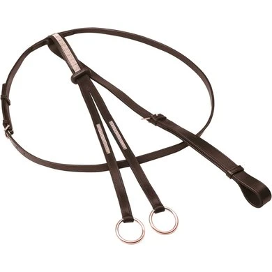 Martingale van de hoogste leerkwaliteit en afwerking. Met kristallen ketting in vork en borstgedeelte. RVS beslag met rosé afwerking.