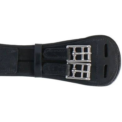 Anatomisch gevormd en zacht onderlegd. Het beste vakmanschap garandeert de beste pasvorm en comfort voor het paard en voorkomt schuurplekken. Roestvrijstalen rolgespen, elastische inzetstukken aan beide uiteinden, een ring om hulpteugels aan te bevestigen.