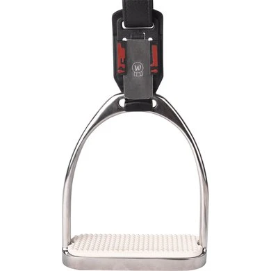 De nieuwe Walhausen stijgbeugelbeveiliging – als de voet van de ruiter vast komt te zitten in de stijgbeugel, zal de ruiter bij een val van het paard scheiden. Als de stijgbeugel een bepaalde hoek in de veiligheidsclip bereikt, komen de twee los van elkaar Overige Belangrijk: let bij het bevestigen van het artikel goed op de montagehandleiding.
