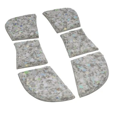 Onze inzetsets kunnen worden gebruikt voor individuele vulling en zo de druk te minimaliseren en eventuele correcties aan te brengen. Ze zijn zeer slijtvast, zweetbestendig en vermoeien niet, zelfs niet bij langdurig gebruik. Er is een keuze uit composietschuim of polyvilt als opvulstof voor de meeste pads. Elke set is specifiek ontworpen voor de specifieke pad. Waar composietschuiminzetstukken worden gebruikt, moeten deze zo worden geplaatst dat de afgeronde rand naar het paard wijst. – Bijpassende composietschuimvulling voor het zadeldek ultra Triple XH (art.nr. 5162 XH) – Individuele vulling – De dikte van dit materiaal is 15 mm